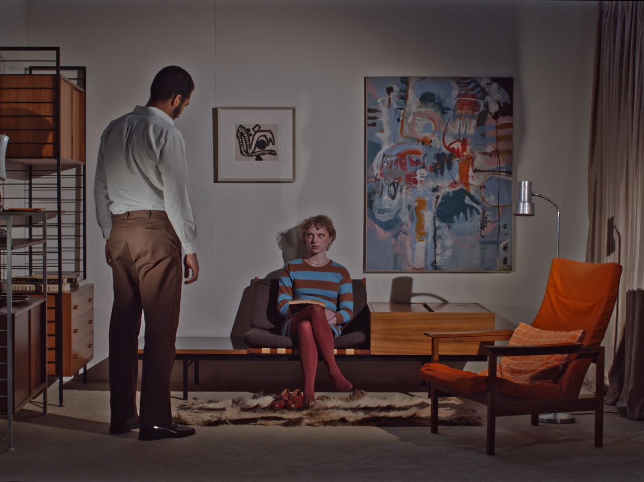 The scenes are highly textural and information-rich - depicting people in spaces. These characters and sets will feel both realistic and unnatural, actualising the dramaturgical theories of Erving Goffman - to whom all sociality is performance - via composition and framing influenced by Rainer Werner Fassbinder and Ingmar Bergman.”